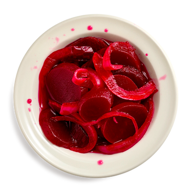 Anyone who sits down to lunch or dinner at Junior’s is greeted with a suite of sides—pickles, coleslaw, and pickled beets. Just be careful not to fill up on pickles before your meal comes out.