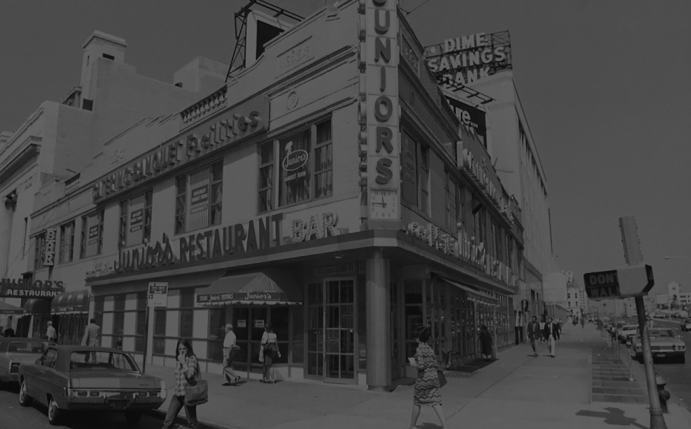 As Brooklyn changed, Harry Rosen replaced The Enduro with a family restaurant and bakery. He named it Junior’s, after his sons Marvin and Walter, and debuted the new restaurant on Election Day 1950.